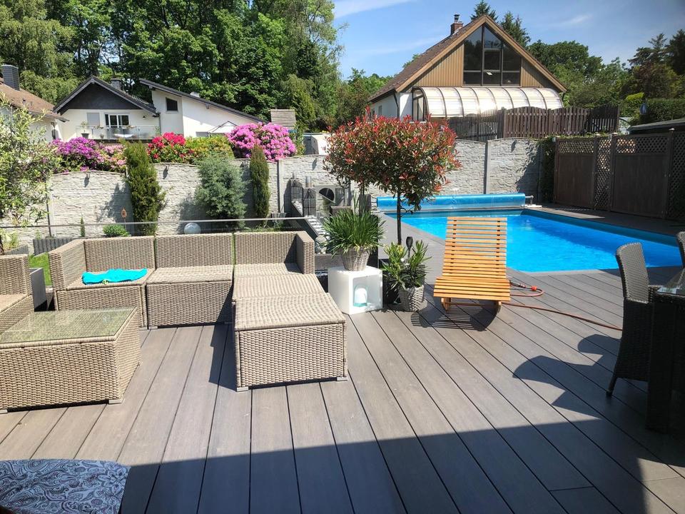 Biete freistehendes Ein- bis Zweifamilienhaus mit Swimmingpool, Sauna und Einliegerwohnung.